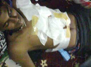 مرآة البحرين: أصيب الطفل محمد أحمد عبدالعزيز (15 عاما) بطلق مباشر من قوات الأمن بالرصاص الانشطاري (الشوزن) عصر أمس الجمعة 13 أبريل/ نيسان 2012 أثناء تشييع الشهيد أحمد اسماعيل بمنطقة سلماباد.