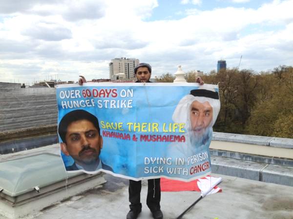 وقد نشرت صحيفة "الوفاق" الايرانية الناطقة باللغة العربية مواقف لناشيطن معارضين حول اقتحام متظاهرين بحرينيين لمبنى السفارة البحرينية في العاصمة البريطانية لندن ورفع صور المعتقلين فوقها. وقال الامين العام لحركة احرار البحرين سعيد الشهابي، أن الناشطين يعتقدان بأن السجن يأتي بقرار اميركي وبريطاني، وبالتالي فانهما يحاولان الضغط على هاتين الحكومتين للافراج عن هؤلاء السجناء، واهمهم الاكثر تعرضا للوفاة هما المشيمع والخواجة.