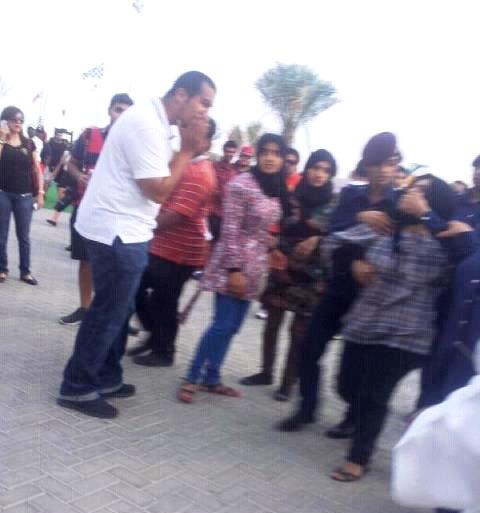 وأظهرت الصور قيام عدد من أفراد الشرطة النسائية يقتدن 4 ناشطات يرتدين أقمصة عليها صورة الناشط الحقوقي عبدالهادي الخواجة، أثناء إلقاء القبض عليهن. وعلم من بين المعتقلات الشاعرة زينب الليث.