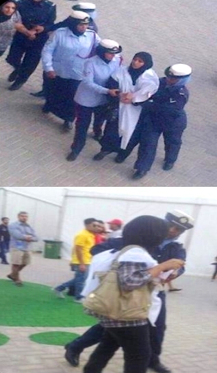 Masooma could not finish off her sentence, as suddenly she was attacked from everywhere, and arrested immediately. She resisted, then the guards attacked her brutally, tearing the shroud she wore and her shirt as well, "They told me while they were tearing my clothes - this is Sheikh Nasser, Your Boss! And all at once abusing me verbally and dragged me” Masooma wrote on Twitter. Mona tried to cover Masooma’s body, however, she was pulled by a civilian man." We felt their nails dig into our skin. They dragged us to the security office." She added.