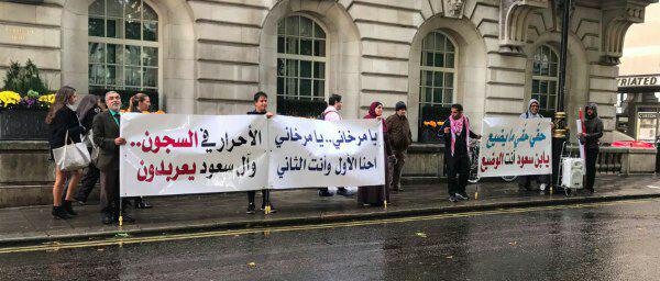 سعوديون يتظاهرون أمس أمام سفارة بلادهم في لندن