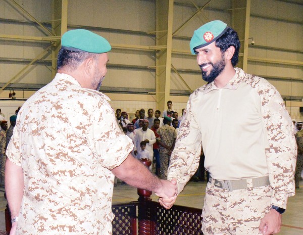 ورحب ناصر بن حمد بالجنود العائدين معرباً عن "شكره وتقديره لهم على ما يبذلونه دائماً من تفان وجهد مخلص في أداء الواجب الوطني المقدس".