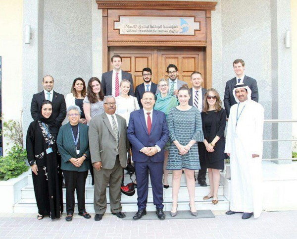 ورحب الدرازي بالوفد الأمريكي، مشيدا بالعلاقات الطيبة التي تربط البلدين الصديقين، مستعرضا للوفد نبذة عن قانون إنشاء المؤسسة الوطنية وأهدافها واستراتيجية عملها، متطرقا إلى الزيارات الميدانية التي تقوم بها سواء للسجون أو التجمعات العمالية لتفقد أحوالهم والتعرف على مشاكلهم والعمل على حلها ان وجدت.