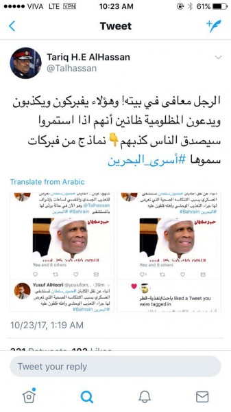 مرآة البحرين: نفى رئيس الأمن العام طارق الحسن اعتقال الكابتن واللاعب البحريني السابق وعضو برنامج المجلس بقناة الكأس القطرية حمود سلطان إن "الرجل معافى في بيته".