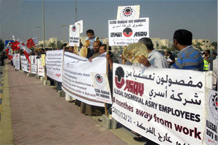 واشار التقرير أن "الحقوق النقابية في البحرين ليست مضمونة على نحو كاف، إذ تم استهداف العديد من أعضاء النقابات والناشطين"، مضيفا "بحلول نهاية العام 2011 بقي 6 أعضاء من الاتحاد العام لنقابات عمال البحرين مفصولين من أعمالهم، بينما طال الفصل أيضاً 44 من قيادات النقابات العمالية في المؤسسات التي يعملون فيها".