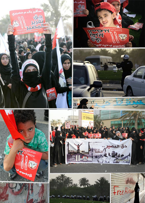 وتكمنت مسيرات بلدات الدراز، بني جمرة، مقابة، من الخروج للشارع العام والالتحام مع بعضها، لتتحول إلى مسيرة ضخمة توجه خلالها الآلاف نحو دوّار الخواجة، حيث انعقد اعتصام تقرير المصير.