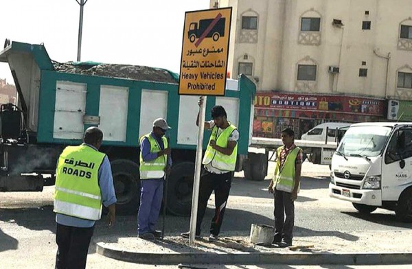 وأظهرت صور نشرتها صحيفة الأيام المحلية، لوحات إرشادية صفراء تم وضعها من قبل وزارة الأشغال بالتعاون مع الإدارة العامة للمرور، نصت على منع الشاحنات الثقيلة من عبور المدخل.