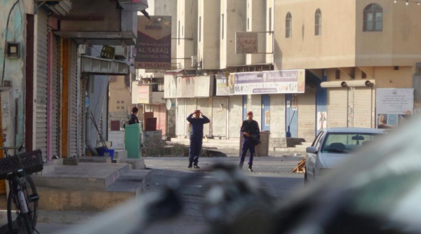 شرطة على منافذ المعامير أمس الأول خلال تفريق تظاهرات لمناسبة عيد العمال