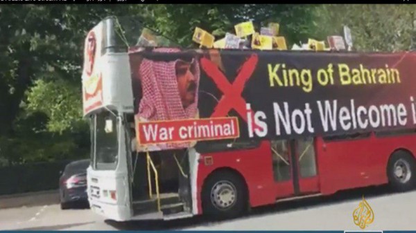 مرآة البحرين: دعت منظمة "الحملة ضد تجارة الأسلحة" CAT، إلى تظاهرة يوم غد السبت 12 مايو/أيار في لندن، احتجاجا على زيارة ملك البحرين إلى بريطانيا لحضور مهرجان ويندسور للخيول، كضيف شرف رئيس على الملك إليزابيث.