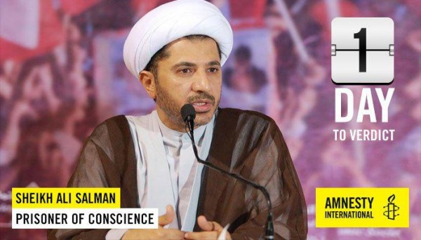 العفو الدولية تجدد مطالبتها بالإفراج عن الشيخ علي سلمان عشية جلسة النطق بالحكم ضده