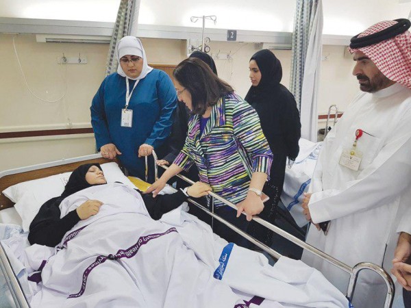 وتفقدت وزيرة الصحة فائقة الصالح أمس حالات مصابي الحادث الذي وقع للحافلة التي كانت متوجهة الى المدينة المنورة وعلى متنها 46 راكبا، والذين تم نقلهم من مطار البحرين الدولي أمس الأول إلى مجمع السلمانية الطبي.