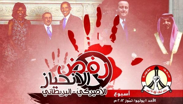 مرآة البحرين: دعا ائتلاف شباب ثورة 14 فبراير/ شباط في البحرين أنصاره إلى الاستعداد لما أسماه "أسبوع رفض الانحياز الأميركي - البريطاني" الذي يعتزم فيه إقامة سلسلة من الفعاليات تستنكر انحياز كل من الولايات المتحدة والمملكة المتحدة إلى النظام البحريني، وفي إشارة إلى رفض الأخيرتين التوقيع على بيان مؤخراً تبنته الدول الأعضاء في مجلس حقوق الإنسان التابع إلى الأمم المتحدة.