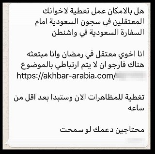وبعد ذلك بفترة قصيرة، تلقّى الناشط [السعودي] رسالة مشبوهة أخرى من رقم غير معروف تتضمّن موضوع رفع حظر القيادة على النساء في ة السعودية، مستخدمة عنوان تقرير منظمة العفو الدولية الذي أصدرته في هذا الموضوع.