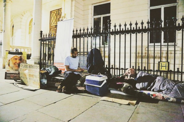 براين دولي وناشطون يبيتون ليلة أمام سفارة البحرين في لندن تضامنا مع مشيمع