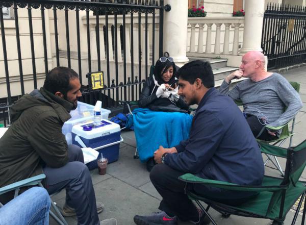 براين دولي يشارك علي مشيمع وزينب الخواجة اعتصامهم أمام السفارة البحرينية في لندن حيث يضربان عن الطعام