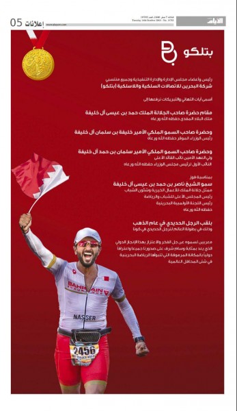 مرآة البحرين: واصلت الوزارات والهيئات الحكومية البحرينية نشر إعلانات مدفوعة في الصحافة المحلية لتهنئة نجل الملك بفوز زائف لم يحصل في بطولة الرجل الحديدي العالمية على خلاف برنامج التوازن المالي الذي أعلنت عنه الحكومة وقالت إنه يستهدف ترشيد الإنفاق وتحقيق التوازن المالي مع حلول العام 2022.