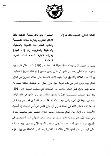 نحو 400 من أصل 629 صفحة في ملف المحاكمة الضخم المسجل تحت قضية رقم (2017159646) تدور كلها حول "قناة الجزيرة". تفريغ وثائقيّات وبرامج ومقابلات وأحاديث وتغطيات صحافيّة ووقفات مطولة في أثناء التحقيق مع المتهم وشهادات شهود الإثبات، جميعها تتحدّث عن "قناة الجزيرة" لا عن شيء آخر، وعن لقاءات مزعومة مع رئيس مجلس إدارة شبكة الجزيرة الفضائية الشيخ حمد بن ثامر آل ثاني.
