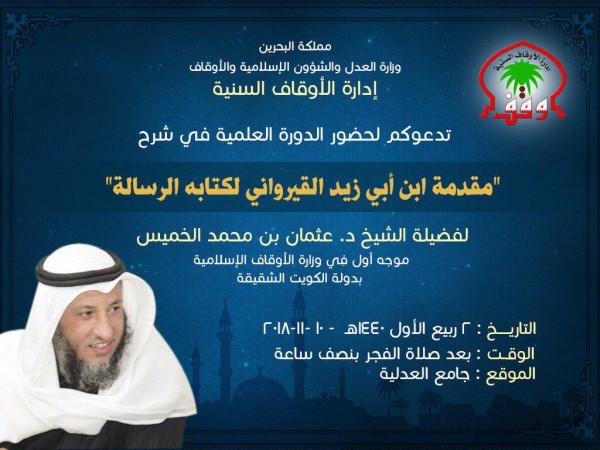 مرآة البحرين: أعلنت الأوقاف السنية في البحرين عن استضافاتها رجل الدين السلفي المتشدد عثمان الخميس لتقديم محاضرة دينية السبت (10 نوفمبر/ تشرين الثاني 2018) في جامع العدلية.