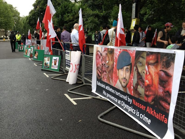 وقادت التظاهرة التي انتهت بالوقوف أمام السفارة البحرينية في لندن، منظمة العدالة للبحرين Justice for Bahrain.
