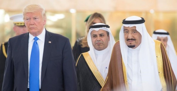 صورة من أرشيف رويترز للعاهل السعودي الملك سلمان بن عبد العزيز يقف بجوار الرئيس الأمريكي دونالد ترامب خلال استقباله في الرياض