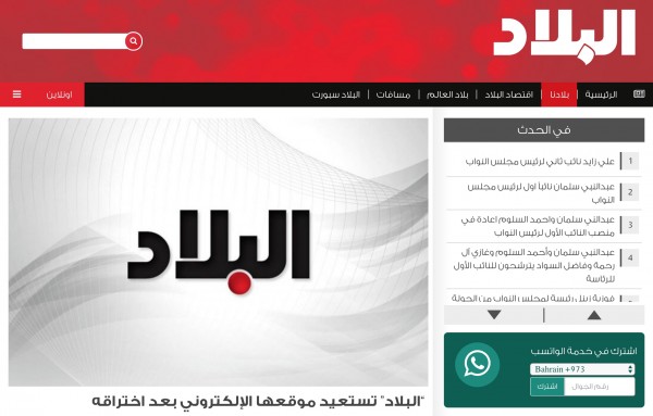 مرآة البحرين: قالت صحيفة البلاد المحلية إن موقعها الإلكتروني تعرض للاختراق فجر أمس الأول الجمعة، لكنها نجحت أمس السبت في استعادته.