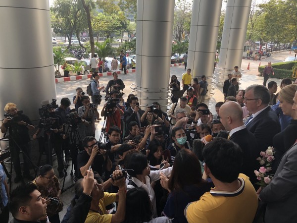 السفير الاسترالي في تايلند يلقي بيانه أمام وسائل الاعلام