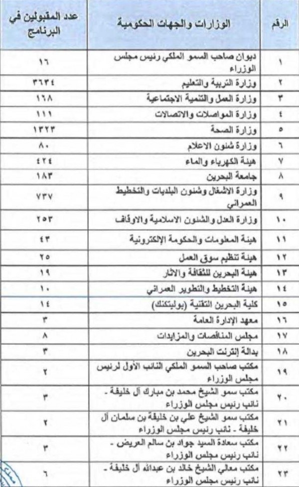 أرقام رسمية: 8025 بحرينيًا تم خروجهم ضمن برنامج التقاعد الاختياري 45٪ منهم من وزارة التربية