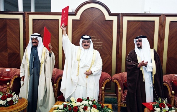 في 14 أكتوبر/ تشرين الأول 2002 وفي ظل الدسـتور الملكي الجديد جرت أولى الانتخابات البرلمانية في البلاد منذ حلّ برلمان 1973. وفي مخالفة صريحة لرأي أعيان البلاد بمن فيهم رجال دين من ذوي النفوذ الشعبي دعت تنظيمات معارضة، وفي مقدمتها جمعية "الوفاق" الوطني الإسلامية الشيعية وجمعية العمل الوطني الديمقراطي "وعد" اليسارية، إلى مقاطعة تلك الانتخابات. في مقابل ذلك بذلت السلطة جهوداً كبيرة لإفشال حملة المقاطعة. شملت تلك الجهود تهديد المقاطعين بحرمانهم من خدمات الدولة كما شملت قيام الديوان الملكي بتمويل الحملات الانتخابية لعدد من المرشحين بمن فيهم بعض المحسوبين على أحد التنظيمات اليسارية. رغم تلك الجهود فقد أدت حملة المقاطعة إلى تدني نسـبة التصويت في الانتخابات البرلمانية إلى 4 ,53 %. وهي نسبة باهتةٌ جداً إذا ما قورنت بنسـبة المشـاركة التي فاقت التسعين في المائة أثناء الاسـتفتاء على ميثاق العمل الوطني قبل ثمانية عشر شــهراً.