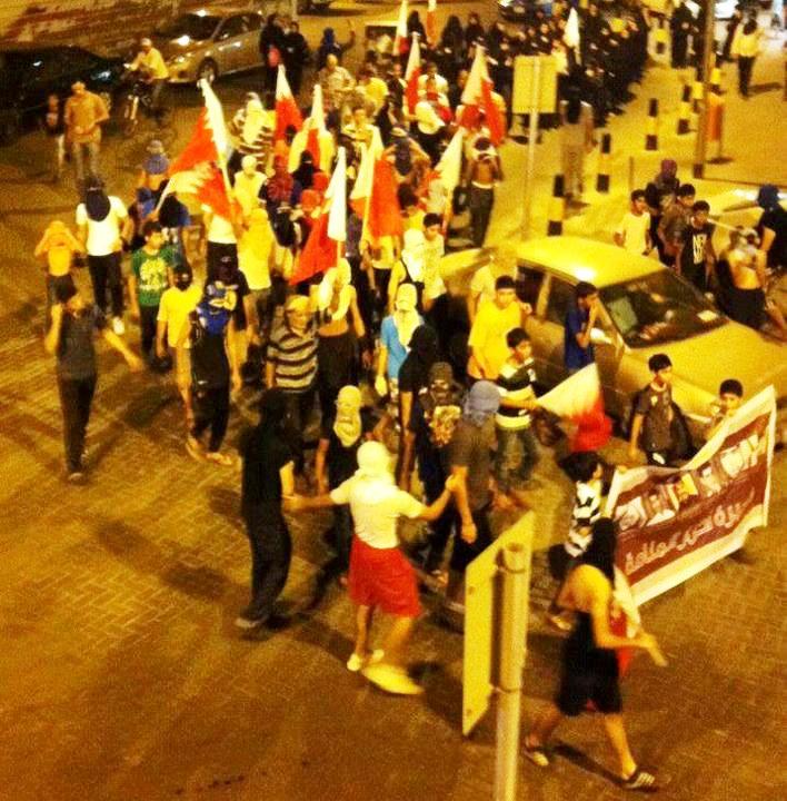 وأطلقت قوات المرتزقة التابعة للأمن البحريني القنابل المسيلة للدموع والقنابل الصوتية على المتظاهرين السلميين، وقامت بملاحقتهم داخل شوارع المنامة القديمة، كما أطلقت قنابل الغاز على المنازل والاعتداء على المارة.