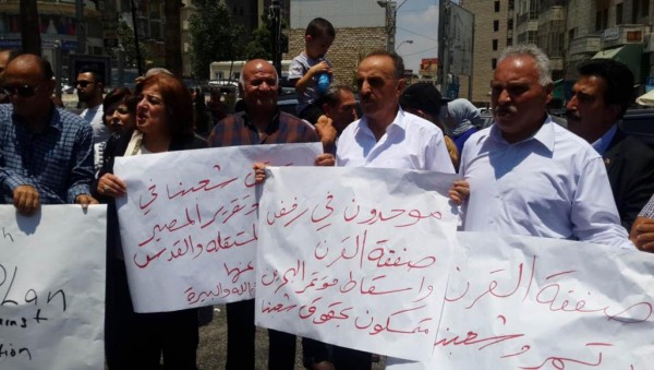 مرآة البحرين: شارك عشرات الفلسطينيين اليوم السبت 16 يونيو 2019، في تظاهرة وسط مدينة رام الله رفضا لعقد ورشة عمل اقتصادية تنظمها الولايات المتحدة في البحرين في إطار خطة شاملة تعدها لتحقيق السلام بين الفلسطينيين وإسرائيل.
