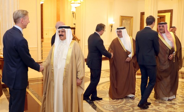 مرآة البحرين (رويترز): التقى عاهل البحرين الملك حمد بن عيسى آل خليفة يوم الثلاثاء بالوفد الأمريكي المشارك في ورشة عمل في المنامة لبحث خطة اقتصادية أمريكية للفلسطينيين.