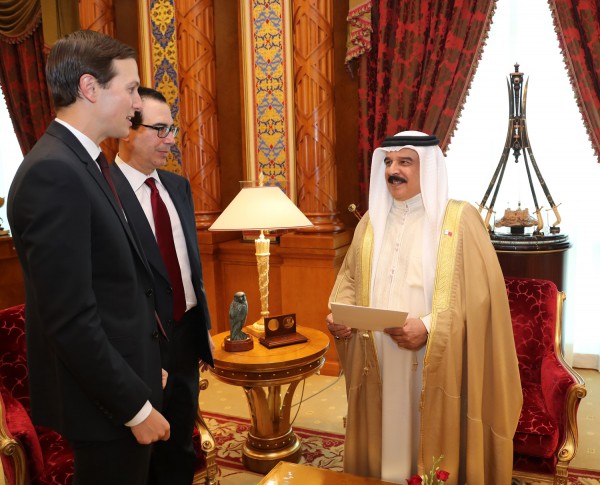 وقالت وكالة أنباء البحرين الرسمية إن الوفد شمل المستشار الكبير بالبيت الأبيض جاريد كوشنر ووزير الخزانة ستيف منوتشين.