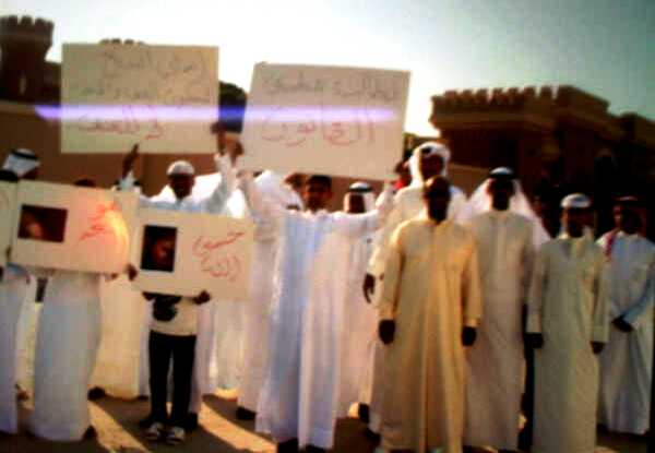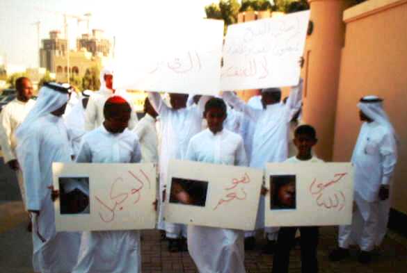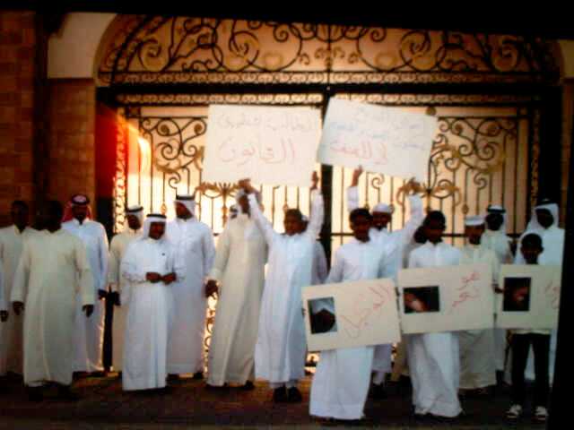مرآة البحرين: في تطور مهم، اعتصم يوم أمس مجموعة من أهالي "البديع" أمام بيت محمد بن سلمان آل خليفة (عم الملك) معلنين وقوفهم في صف المجني عليه "خليفة الحدي" الذي تعرض لاعتداء من قبل أبناء محمد بن سلمان، وطالب المعتصمون بتطبيق القانون والقصاص ممن اعتدوا على "الحدي" ومحاسبتهم.
