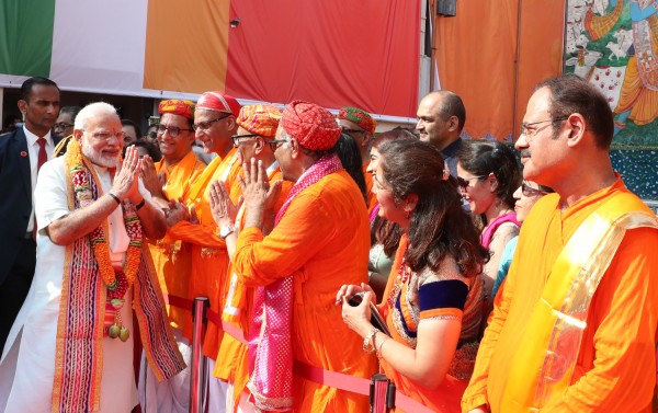اصطحب رئيس الوزراء الهندي للمعبد، كلاً من وزير العدل والشؤون الإسلامية والأوقاف خالد بن علي آل خليفة، ورئيس مجلس أمناء مركز الملك حمد العالمي للتعايش السلمي خالد بن خليفة آل خليفة، لكنّ اللافت كان حضور رئيسة جمعية (هذه هي البحرين) بيتسي ماتيسون ضمن الممثلين الرسميين للسلطة.