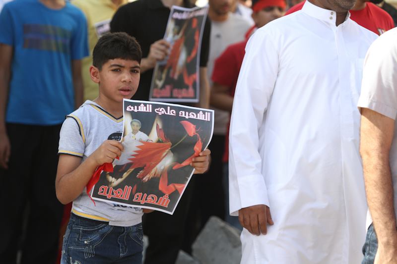 ونقلت الصحيفة عن والدة الشهيد علي الشيخ (14 عاماً) قولها إن ابنها علي قتل برصاص الشوزن الذي تطلقه قوات الامن على المتظاهرين حيث كان برفقة والده في مسيرة احتجاجية بعد صلاة العيد.