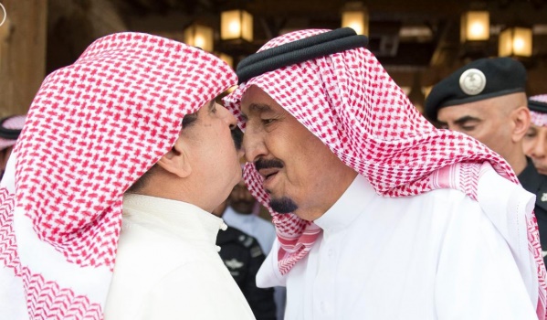 ملك البحرين يقبل أنف العاهل السعودي خلال زيارة للسعودية (أرشيفية)