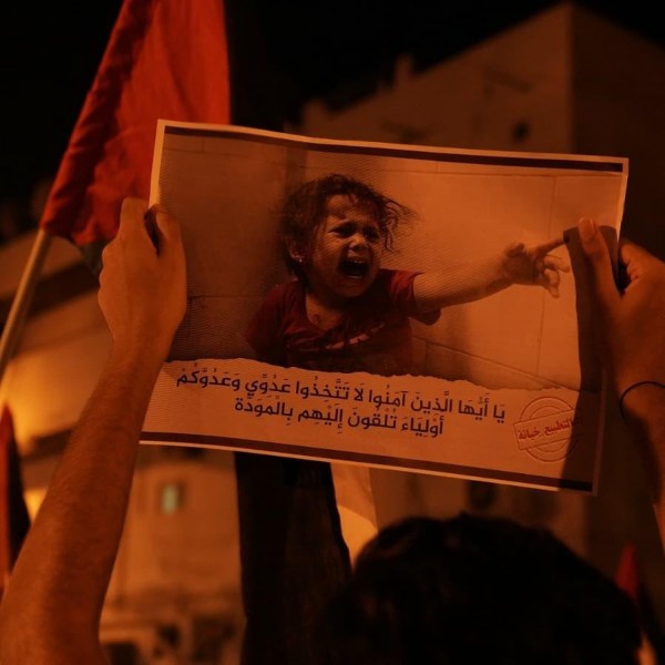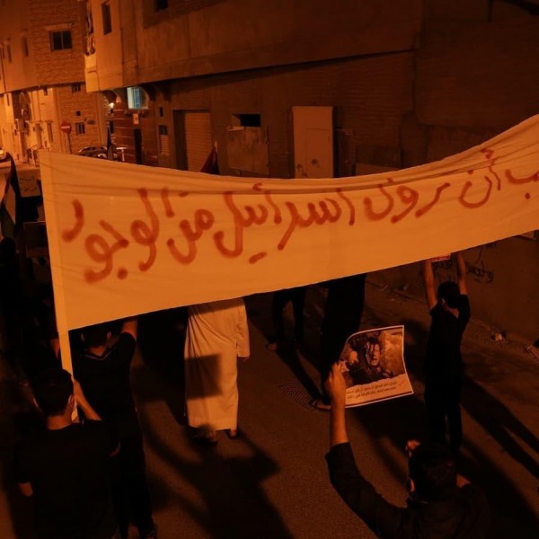 وقد اندلعت هذه التظاهرات يوم الجمعة الفائت، في أعقاب الإعلان عن اتفاقية التطبيع، على الرغم من الإجراءات الأمنية من قبل النظام، وأصر البحرينيون عبرها على التعبير عن رفضهم للتطبيع واتفاق الخيانة، كما جددوا عهودهم للقدس وفلسطين.