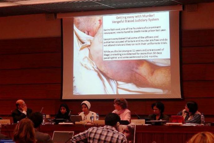 مرآة البحرين (جنيف): ألقت رئيسة منظمة "برافو" الطبيبة البحرينية "ندى ضيف" كلمة مثيرة في جلسة مجلس حقوق الإنسان في جنيف اليوم، محرجة وزير الخارجية البحريني حين رفعت يدها مشيرة إليه وهي تخاطبه بحدة.