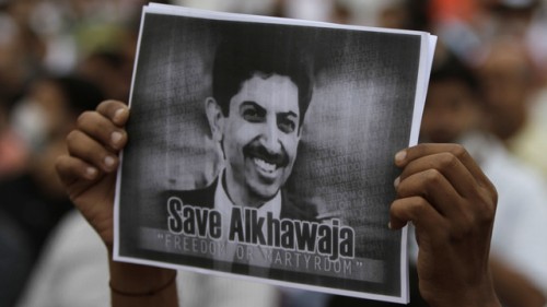 ويقضي الخواجة حكمًا بالسجن مدى الحياة على خلفية قيادته للاحتجاجات المعارضة للحكومة.