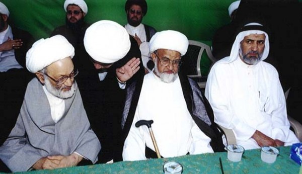 صورة أرشيفية تجمع آية الله قاسم مع المرحوم الشيخ الجمري بحضور الأستاذ عبدالوهاب حسين