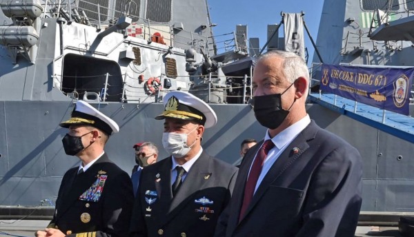 وزير الدفاع الإسرائيلي خلال زيارته الأسطول الخامس الأمريكي في البحرين