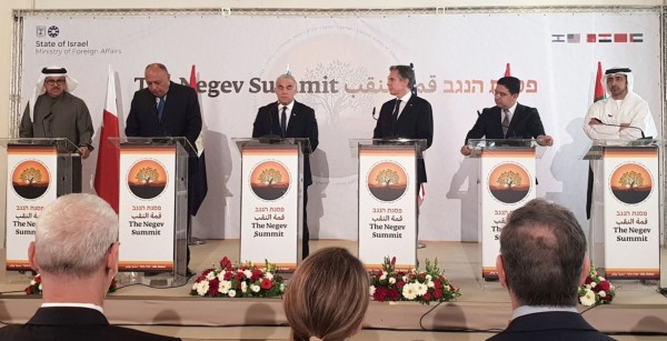 وكان وزراء خارجية كلّ من الكيان الصّهيوني والإمارات والبحرين والمغرب ومصر اجتمعوا في مارس/آذار لحضور قمة النقب، وأعلنوا أنّهم سيعملون على مجالات لا تعد ولا تحصى من المصالح المشتركة، وفقًا لما أعلنه يومها وزير خارجية الاحتلال في كلمته الافتتاحية عن قرار بتحويل الملتقى إلى "منتدى دائم"، مشيرًا إلى أنه يعكس بلورة "هيئة أمنية إقليمية لمواجهات التّحديات الأمنية التي تواجهها الدّول المشاركة في المؤتمر".