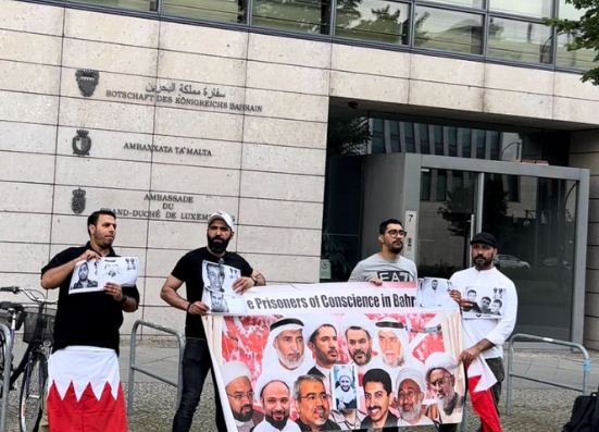 ونظّم نشطاء بحرينيون اعتصاماً أمام سفارة البحرين في برلين تضامناً مع معتقلي الرأي المضربين عن الطعام في سجن "جَوْ" بمن فيهم الرموز قادة المعارضة.