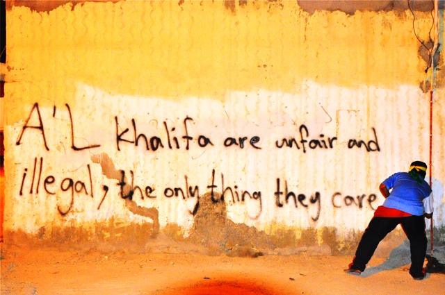 قرّرت قبول تلك الدعوة لأني احتجت لبعض الوقت لإعادة التفكير في التغير الذي مررت به في العام والنصف الماضي، ولأنها فرصة للقاء الكثير من الأصدقاء، المفاجأة كانت أنه فور دخولي إلى المركز الثقافي وجدت في وجهي صورة مألوفة جدًا على الإعلان الداعي للفعالية، كانت صورة لجدار في البحرين كتب عليه متظاهرون شعارات مناوئة ثم مسحتها قوات النظام وأعيدت الكتابة وأعيد المسح … وهكذا إلى أن أصبح الجدار مليئًا بعدّة ألوان وكلمات تبدو وكأنها تحاول كسر الأصباغ التي استخدمت لتغطيتها لتخرج للعلن برسالتها، حين سألتهم من أين حصلوا على الصورة قالوا أن أحد المشاركين (غير بحريني) مر بقرية بالقرب من المطار فرأى ذاك الجدار وقرر أن يلتقط الصورة ويجعلها كمثال على الكبت وغياب مساحات التعبير الحر.