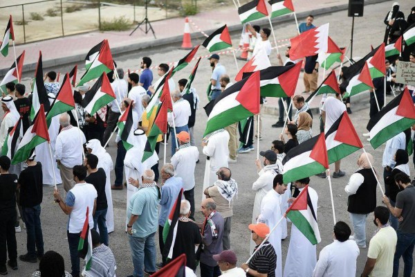 مشاركون في التجمّع الجماهيري ضد التطبيع في المنامة