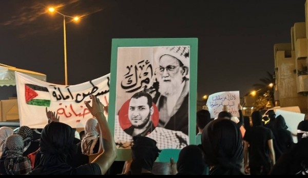 وحمل المشاركون في المسيرة أعلام البحرين وصور آية الله قاسم والشهداء ولافتات كُتب عليها عبارات "فلسطين أمانة، التطبيع خيانة" و"كلنا مقاومة"، وأطلقوا هتافات "عهداً عهداً يا شهداء نحن لكم أوفياء"، "لبيك عيسى قاسم.. يا قيادتنا الشرعية".