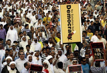 وأضافت بالحسن نكرر دعواتنا للحكومة البحرينية بالإفراج الفوري عن جميع المعتقلين بسبب ممارستهم لحقهم المشروع في حرية التعبير عن الرأي، وحقهم في التجمع السلمي.