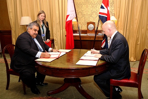 مرآة البحرين: قالت وزارة الخارجية البريطانية إنها اتفقت مع البحرين على إنشاء فريق وزاريّ بين البلدين من أجل دعم عملية الإصلاح في البحرين. وقال وزير الخارجية البريطاني، ويليام هيغ، عقب اجتماع اليوم مع نظيره البحريني، خالد بن أحمد آل خليفة «أجريت محادثات مثمرة وبناءة اليوم مع وزير الخارجية البحريني الشيخ خالد آل خليفة لمناقشة التطورات في البحرين وسبل تقديم المملكة المتحدة للمزيد من الدعم لعملية الإصلاح في البحرين».