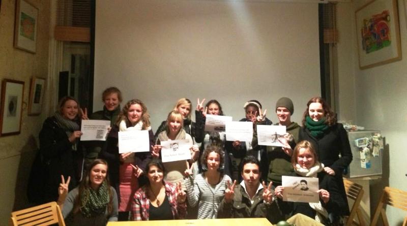 مجموعة من الطلبة الهولنديين يرفعون صور ورسائل تضامنية مع شعب البحرين