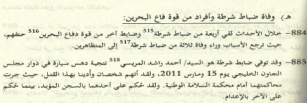 هذا من جهة، من جهة أخرى، يثبت تقرير بسيوني، أن ضابط الشرطة أحمد راشد المريسي، مات نتجية دهس سيارة له في دوار مجلس التعاون الخليجي.
